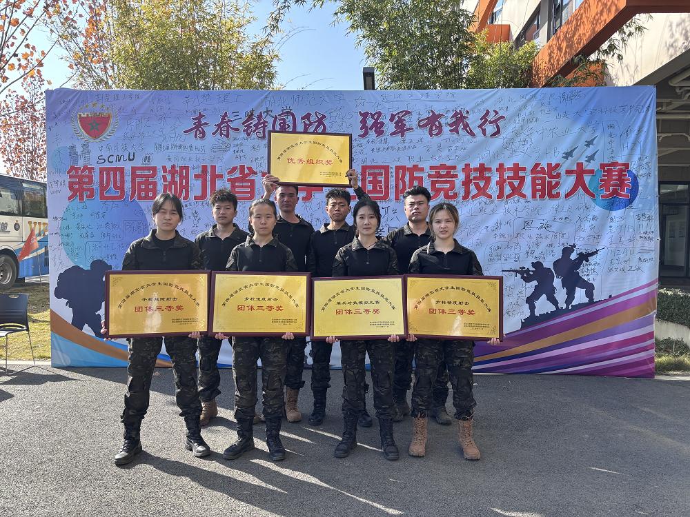 11月30日,第四届湖北省大学生国防竞技技能大赛圆满落下帷幕。我校代表队在此次大赛中喜获佳绩,斩获速度射击、精度射击、手枪越障、单兵对抗四项团体赛三等奖,体育学院学生贲驰、陈赤苗分别获得步枪速度射击男子组和女子组三等奖,带队教师王璠获得“优秀指导教师”、学校获“优秀组织奖”共8项荣誉。
