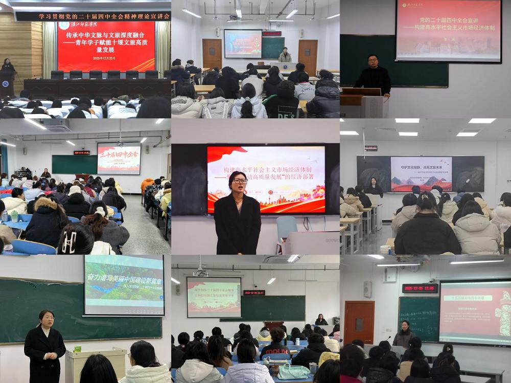 在各学院的宣讲现场,辅导员理论宣讲团成员紧扣党的二十届四中全会精神,立足各学院专业特点,围绕文化传承与文旅融合、激发全民族文化创新创造活力、培养新时代理论宣讲青年力量、建设高水平社会主义市场经济体制、发挥体育育人功能服务体育强国战略、推进科技创新与核心技术攻关、加强高素质教师培养助力教育现代化等主题,运用鲜活案例与生动语言,对全会精神进行了深入浅出地阐述与解读。
