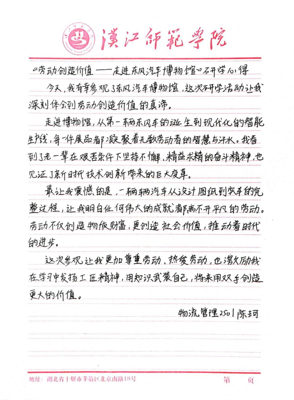 此次劳动教育是我校继走进东风故里开展“东风故里的劳动赞歌” 特色实践活动后,再启工业劳动教育实践之旅。我校作为湖北省最早开设劳动教育课的高校之一,坚守劳动教育课程 30 年,走进东风故里、东风汽车博物馆之系列劳动教育实践活动,是学校推进 “六位一体” 劳动教育清单制度的具体举措。学校将持续把劳动教育课堂搬进工业现场、文化阵地,让学生在实践中感悟劳动精神、锤炼劳动本领,真正实现劳动教育以劳树德、以劳增智、以劳强体、以劳育美、以劳创新的育人目标。
