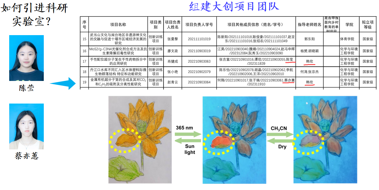 “让学生在实验室里触摸专业的温度,在创新实践中涵养优良学风”,这是韩欣老师始终坚守的育人理念。面对学生对有机化学实验的抵触,他用一场趣味实验打破壁垒:指导学生手绘莲花,用合成的有机化合物为花瓣 “上色”,当紫外灯亮起,荧光莲花在黑暗中绽放,这份名为《清莲》的作品斩获学院 “廉生微” 比赛三等奖,瞬间点燃了学生的科研热情。