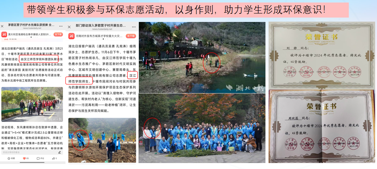 他以身作则,带领学生积极参与各类环保志愿活动。一次次志愿实践,不仅让学生将专业所学转化为服务社会的力量,更让环保的种子深深扎根在学生心中,培养出有温度、有担当的新时代环境学子。