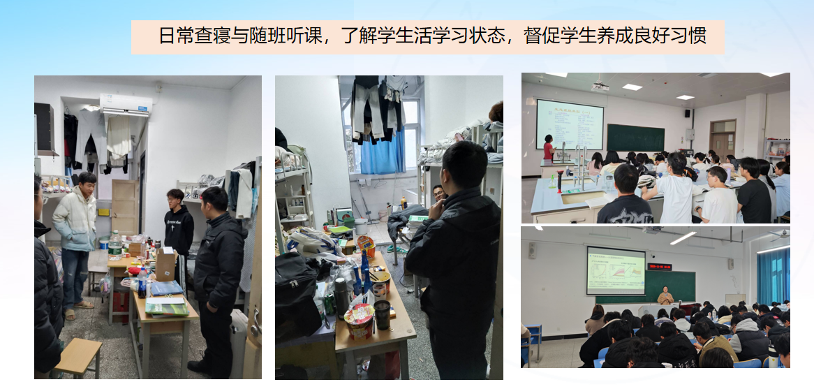 育人先育风,良好的班风学风是学生成长的基石。何涛老师将“成长+成才”作为班级管理核心目标,把班风学风建设落到日常点滴中。他定期召开班委会、主题班会,凝聚班级共识;坚持日常查寝与随班听课,实时掌握学生生活学习状态,督促学生养成良好习惯;常态化开展谈心谈话,倾听学生心声,精准把握学生需求,明确育人工作重心。