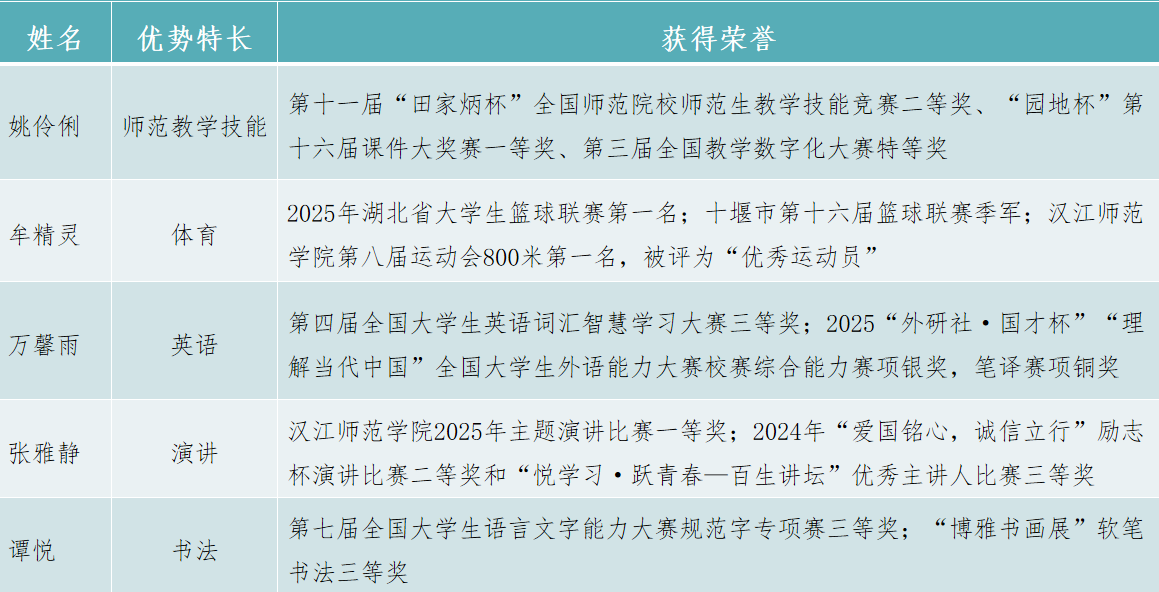 尊重学生个性,挖掘学生特长,是孙浩老师的育人追求。他关注每位学生的优势所在,为不同特长的学子搭建展示与成长的平台,让班级呈现“百花齐放”的发展态势:师范教学技能突出的姚伶俐、体育特长亮眼的牟精灵、英语能力出众的万馨雨、演讲功底扎实的张雅静、书法技艺精湛的谭悦……每位学生都能在自己擅长的领域崭露头角,取得令人瞩目的成绩,收获属于自己的荣誉与成长。