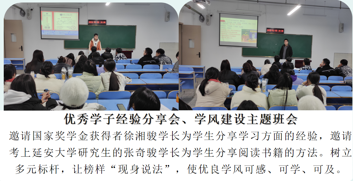 优良学风是班级发展的根基。孙浩老师以“典型引路”为抓手,打造学风建设“标杆矩阵”:定期开展优秀学子经验分享会、学风建设主题班会,邀请国家奖学金获得者、考研上岸学长学姐等优秀榜样“现身说法”,分享学习方法、阅读技巧;连续多年组织读书分享会,让榜样的力量可感、可学、可及,在班级内形成比学赶超、勤学善思的浓厚学风。